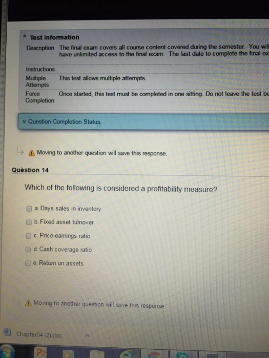 Solved Which Of The Following Is Considered A Profitability Chegg Com
